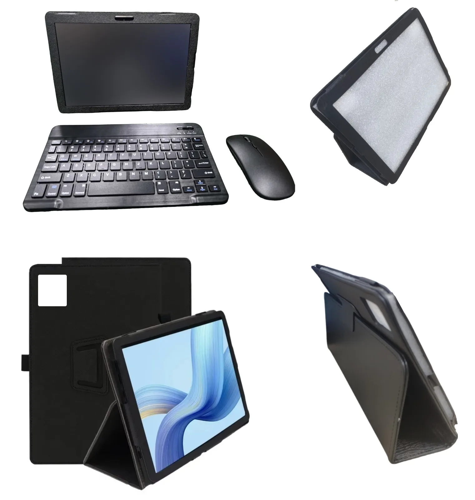 The 10000mAh battery ensures long-lasting use, while features like FM radio, gravity sensor, and multilingual support enhance functionality. Package includes: tablet PC, keyboard, charger, OTG cable, user manual, screen film, stylus pen, and wired earphones. Stylish back cover with durable IML technology and sleek card flash effect. Optional premium leather case and wireless mouse for just $6.50.