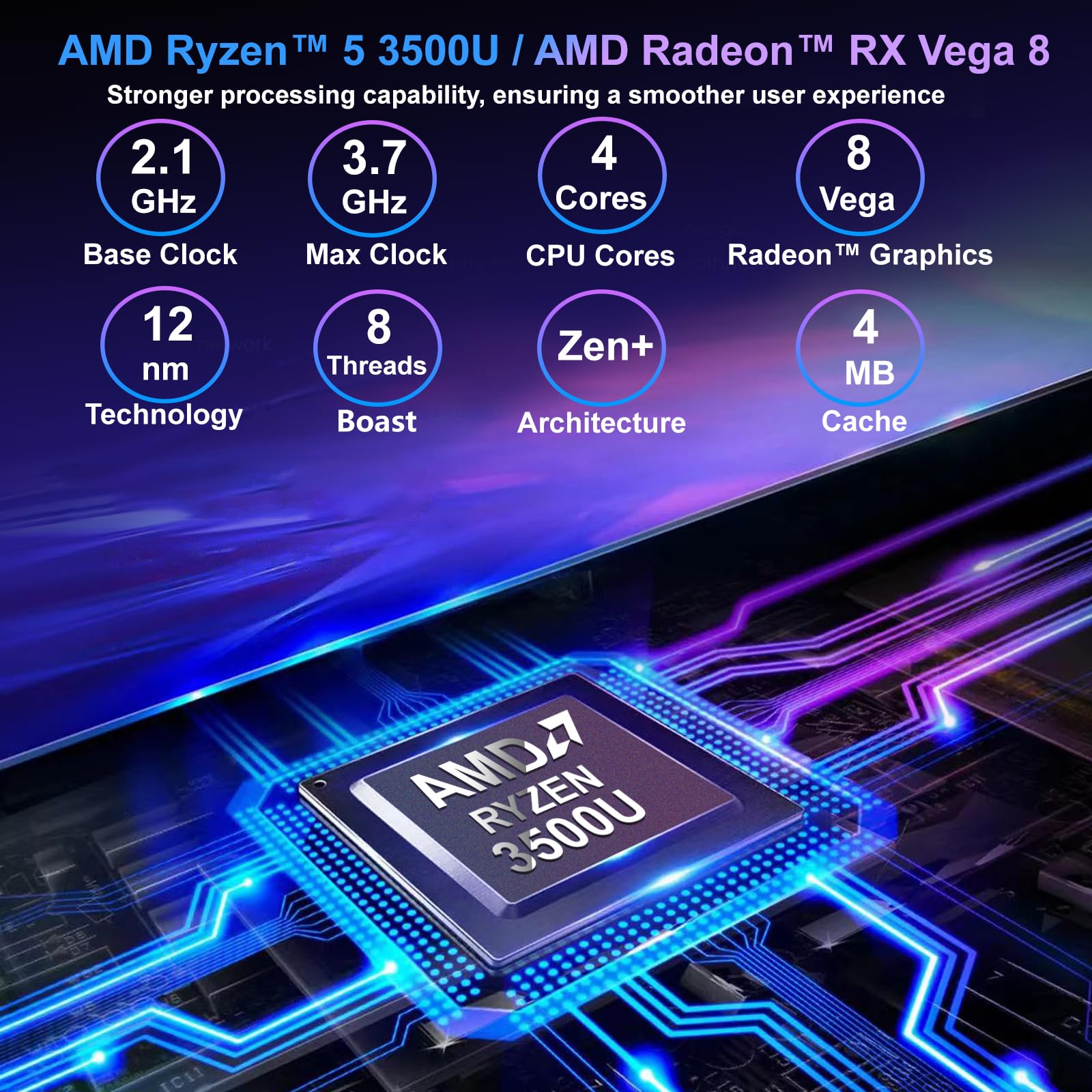 【AMD Ryzen Processor】 Powered by the AMD Ryzen 5 3500U mobile processor based on Zen+ architecture (up to 3.7GHz), TDP 15W. This laptop PC, laptop computer, and notebook ensure that you can easily handle multiple tasks on your Windows laptop and run smoothly without worrying about delays. With 4 cores and 8 threads, it efficiently manages demanding applications and multitasking scenarios.