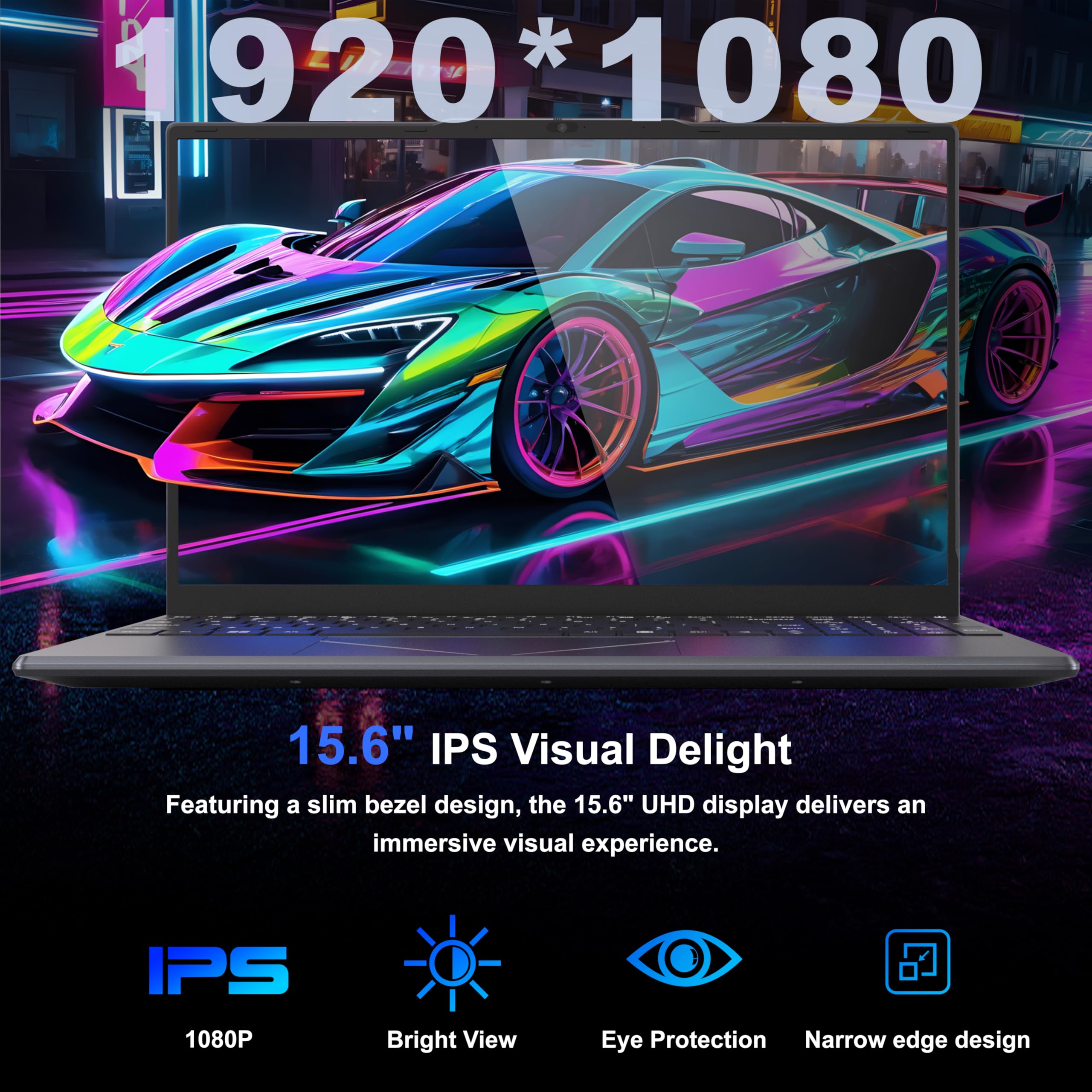 【15.6 inch Display】 The laptop computer features a 15.6-inch Full HD (1920 x 1080) IPS non-touch display with a 16:9 aspect ratio and narrow bezels, perfect for immersive experiences such as video editing, gaming laptop computer, or movie watching. The anti-glare screen and 178-degree wide viewing angles deliver vivid colors and clear visuals, making this laptop pc ideal for creative professionals, students, and everyday users.