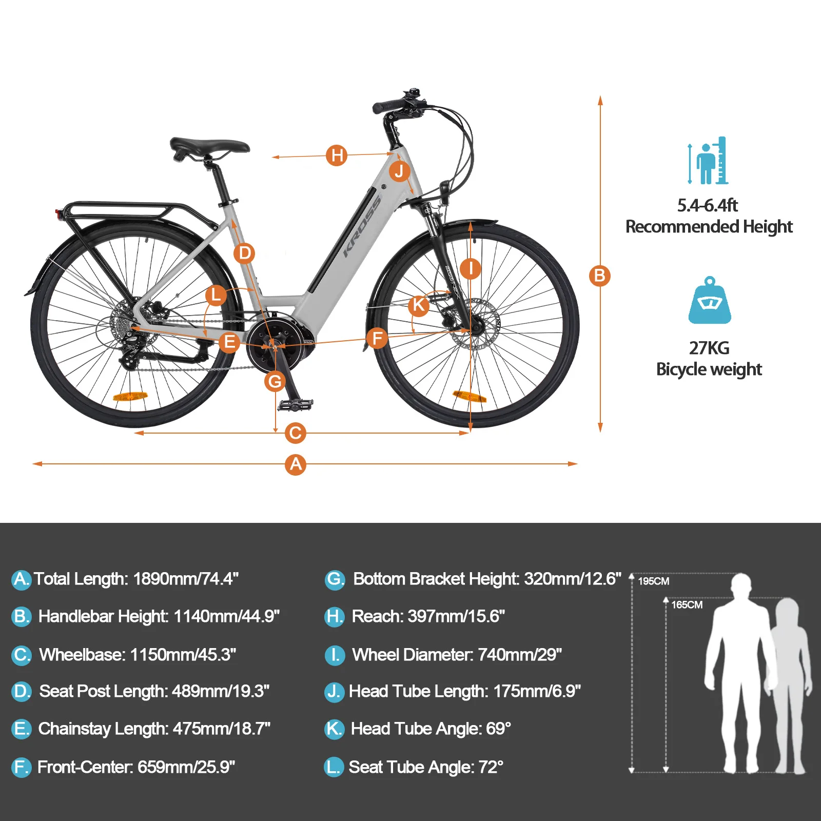 With the adjustable handlebar and seat, the use can adjust the distance between handlebar and seat tuning to their weight to ensure a comfortable ride. This design also allows drivers between 1.65 and 1.95 m in heights to easy just their e-bike to the right eight for them.