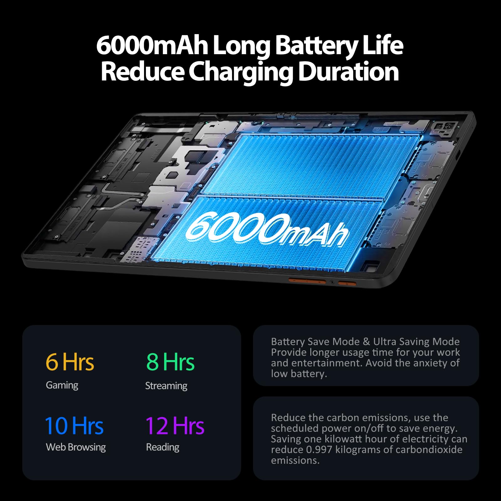 Battery Life – With a powerful 6000mAh battery, you can enjoy hours of uninterrupted usage for streaming, browsing, and gaming without worrying about constant recharging. Whether you’re on a long commute, traveling, or simply enjoying a day at home, this tablet keeps you connected. With Android 15 OS power management features, this tablet maximizes battery efficiency, ensuring you get the most out of each charge. Enjoy extended usage times without compromising on performance