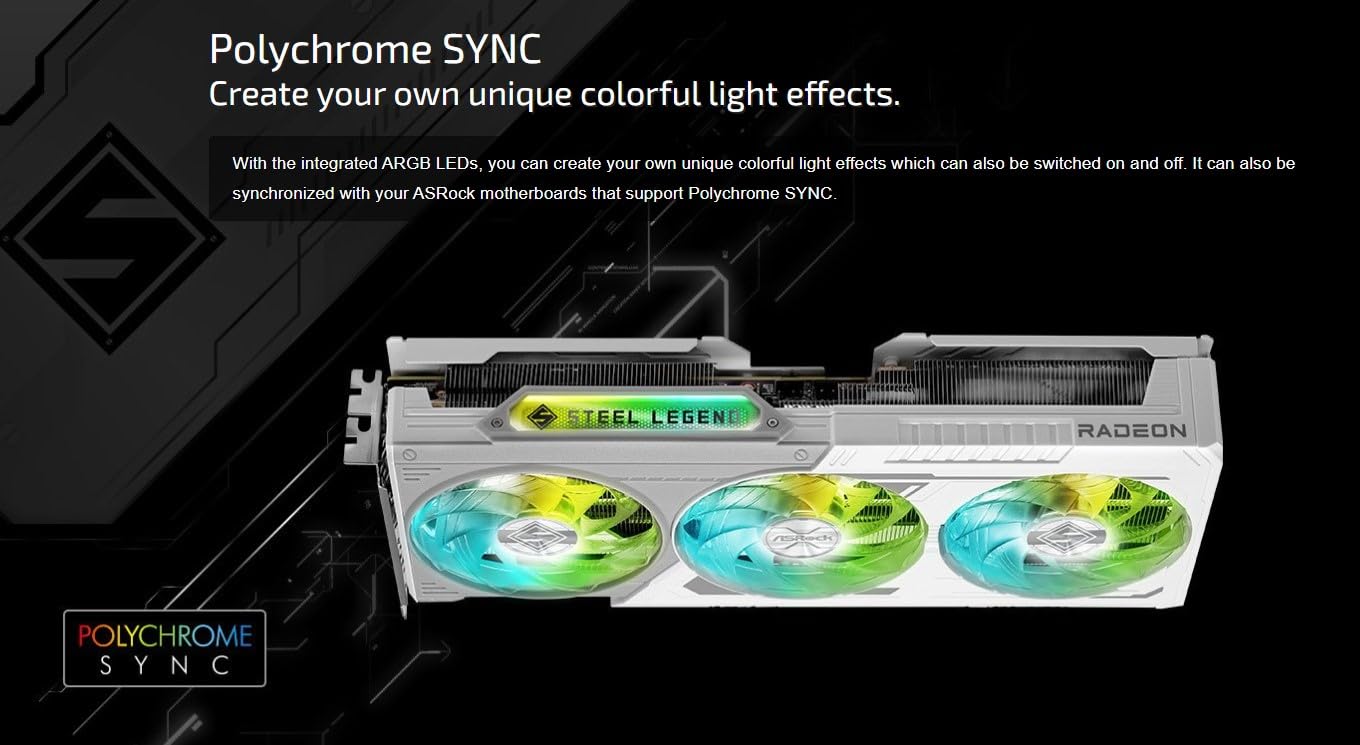 Details: Unleash Dominant Performance Experience elite gaming with the ASRock Radeon RX 9060 XT Steel Legend 8GB GDDR6 OC. Built on AMD’s revolutionary RDNA 4 architecture, it features 32 Compute Units with 3rd Gen Ray Tracing and 2nd Gen AI accelerators for lifelike visuals and intelligent performance. Factory-overclocked to a blazing 3320 MHz Boost Clock and 20 Gbps memory speed, it crushes 1440p and 4K gaming while supporting PCIe 5.0 for future-ready bandwidth. Intelligent Cooling & Durability Stay cool under pressure with the triple-fan Steel Legend design. Striped Ring Fans, Ultra-fit Heatpipes, and Air Deflecting Fins maximize airflow while 0dB Silent Cooling halts fans during light use for absolute quiet. Military-grade Super Alloy components and a sturdy metal backplate ensure thermals stay controlled and durability lasts. Polychrome SYNC RGB synchronizes with ASRock motherboards for a cohesive, battle-ready aesthetic. Future-Proofed Visual Powerhouse Engineered for longevity, this GPU delivers uncompromising power via a single 8-pin connector and supports DirectX 12 Ultimate for cutting-edge gaming. HDMI 2.1b and DisplayPort 2.1a outputs enable 8K/120Hz or 4K/240Hz immersion. Whether ray tracing or streaming, the RX 9060 XT Steel Legend balances peak performance, whisper-quiet operation, and headroom for tomorrow’s titles.
