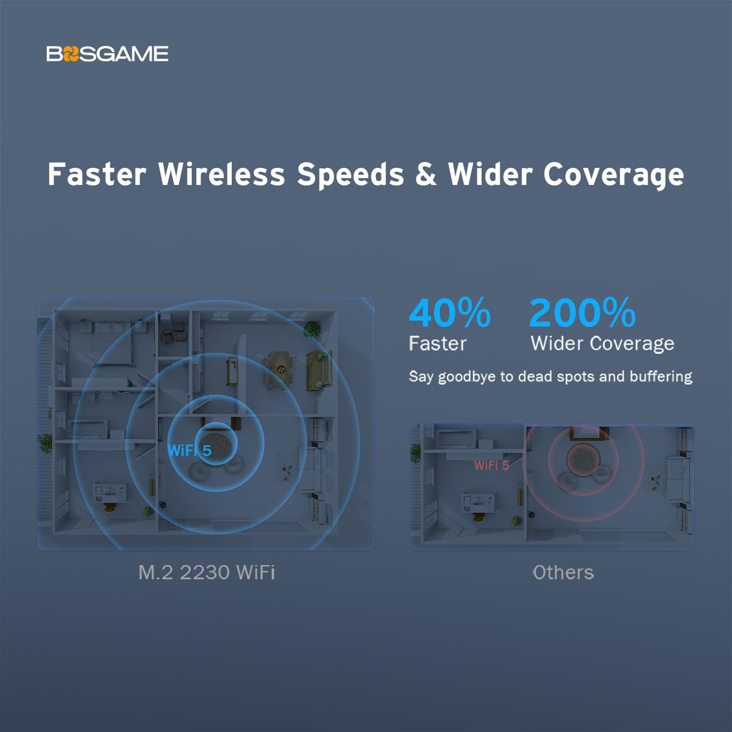 🌠【Experience smooth networking】The integration of a stable and fast Gigabit Ethernet(2.5G LAN) connection, alongside the built-in M.2 KEY E 2230 WiFi module(WiFi 5-802.11ac technology), makes the Bosgame B100 micro PC well-suited for reliable networking performance. The inclusion of a 2500Mbps Gigabit Ethernet port facilitating rapid downloading and uploading of large files with ease, and the Wi-Fi 5( 2.4G+5G Dual-band WiFi), users can benefit from optimal connectivity options, ensuring high-speed data transfers.