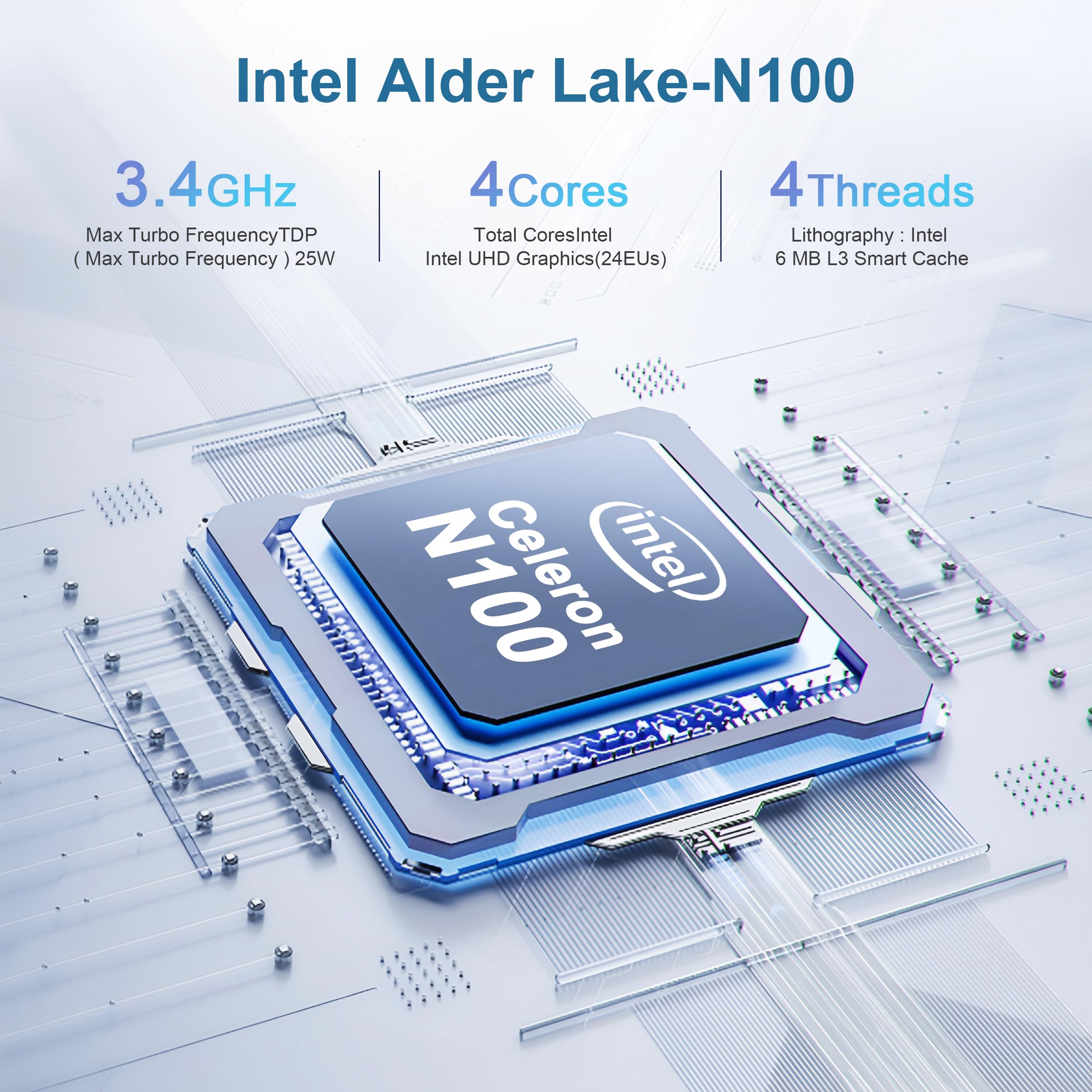 🌠【Latest 12th Intel Alder Lake- N100】Bosgame B100 Mini computers built-in faster 12th Intel Alder Lake- N100 processors(max up to 3.4GHz). The N100 mini pc is noticeably faster and a better performer and delivers over 20% of performance improvement over the Intel N5105 and N5095 CPU. Perfect for ordinary business or personal use such as home, school, office, hospital, industry, etc.
