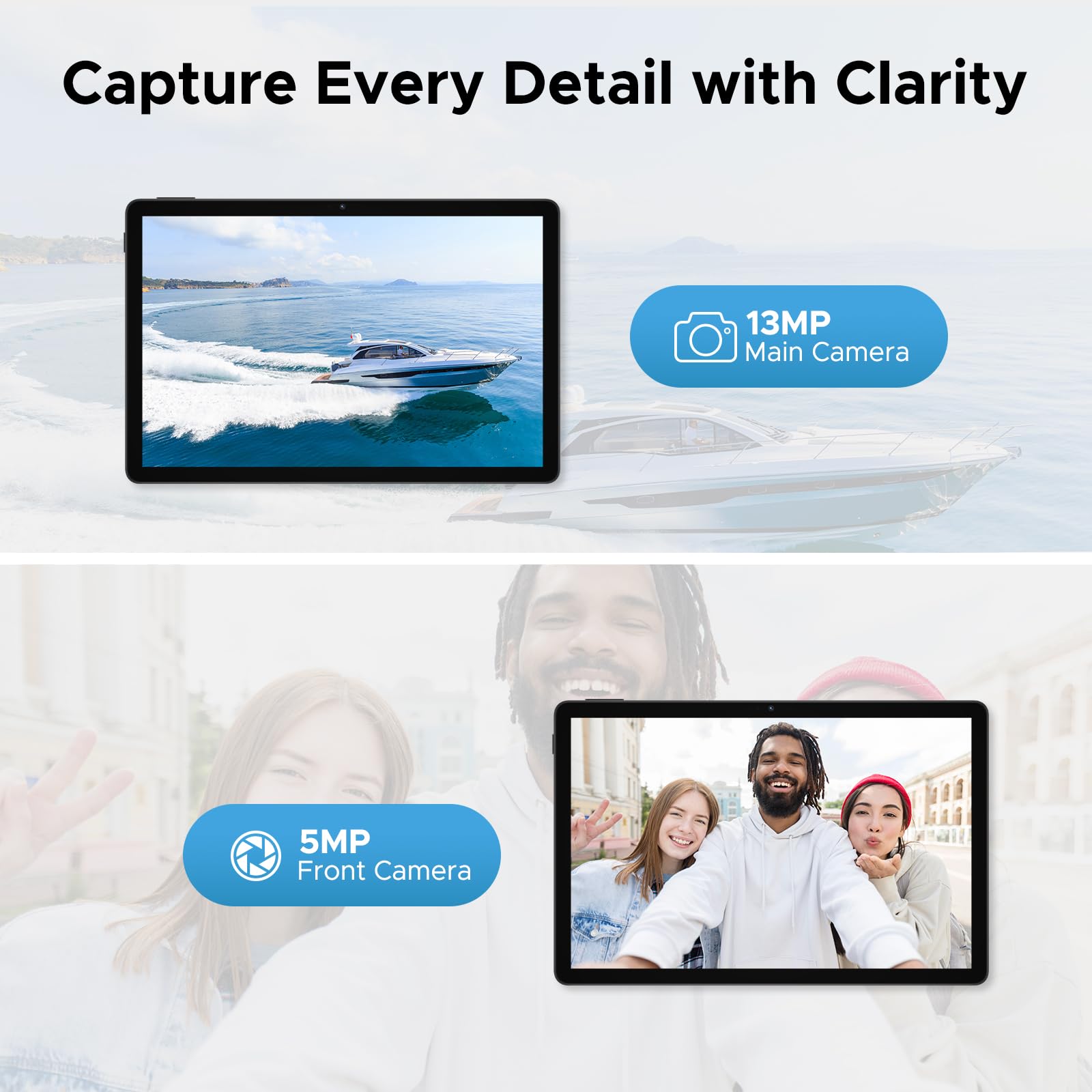 【Ear and visual enjoyment】🎄🔥 DOOGEE U11 gaming tablet is equipped with professionally tuned dual speakers to ensure clear and loud sound. It also enables clearer communication and reduces background noise during video calls. This Android 15 tablet also supports face unlock and combined with a 5MP front camera and 13MP rear camera, you can be the perfect ally for taking selfies, enjoying video chats with friends, photographing and sharing great moments with family and friends, and seamlessly participating in productive online meetings with colleagues.