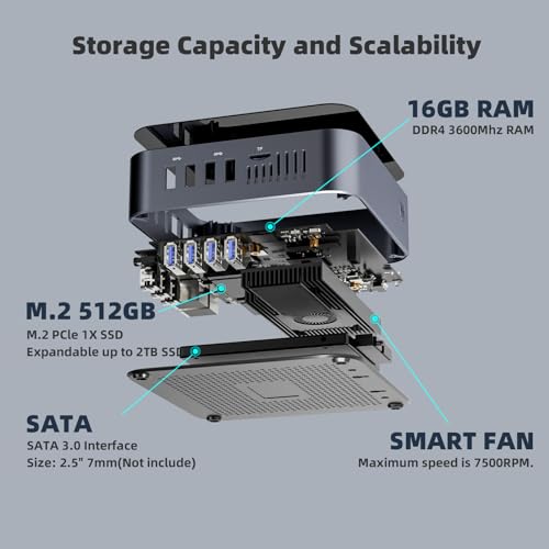 🚀【16GB RAM 512GB M.2 SSD】Desktop PC Storage Expansion: Mini Desktop PC Boots up in Seconds and Transfers Files without Waiting Hours with a High-speed 512GB M.2 SSD Enjoy a Faster Experience with 16GB LPDDR4 for More Speed and Efficiency than 4GB /8GB of RAM You can Also Add a 2.5″” SSD (not included) to Rxpand Memory Upgrade Storage to 2TB, Ideal for Business, Office, Education and Ideal for Everyday Us