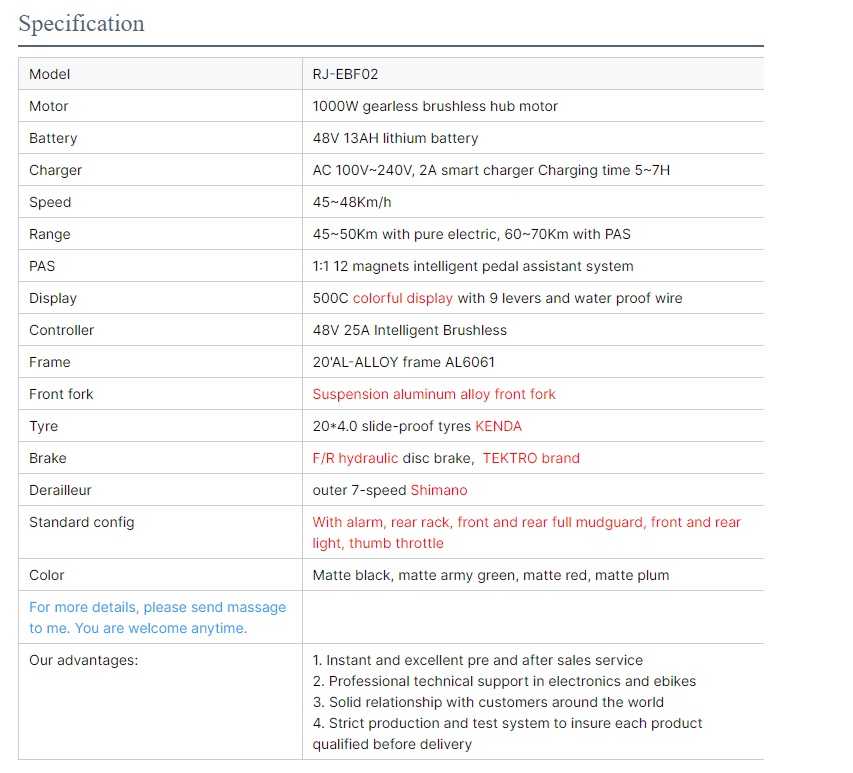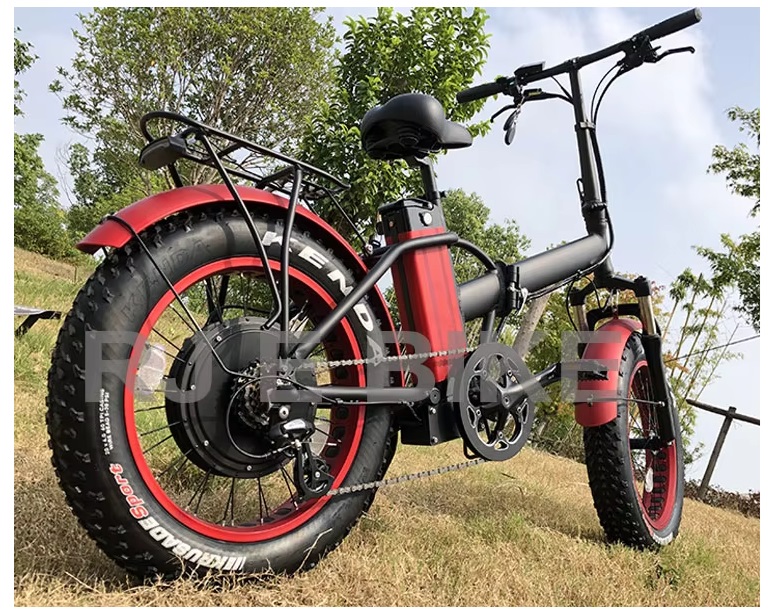 Ebike RJ EBIKE 1000W 48V 13Ah 20 inches fat tire mountain ebike full suspension 7-speed Shimano.