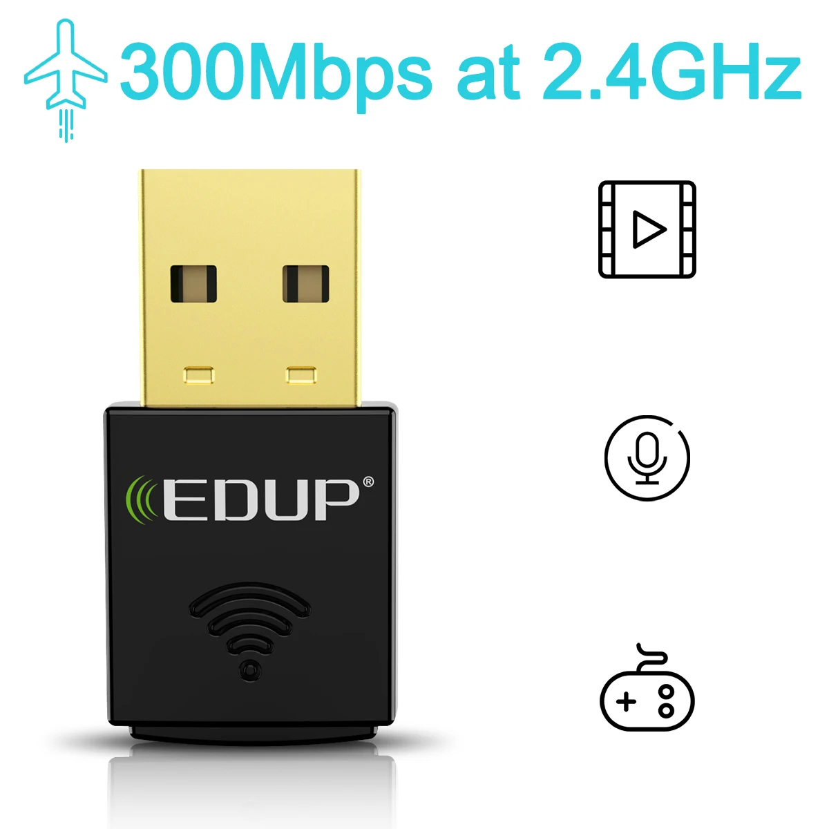 EDUP 300mbps 2.4ghz Realtek8192eu Wi-fi Display Wireless Dongle Lb Link Wifi Adapter Usb Wifi Adapter, Soft Ap 2.4ghz Band Black