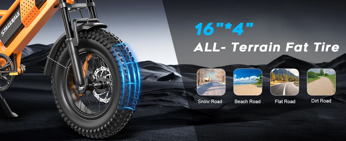 Electric Bike Spacewalk M6/M7 for Teens/Adults 16″/20″ Ebike 1500W for Motor 48V 15Ah Removable Battery 4X Suspension Electric