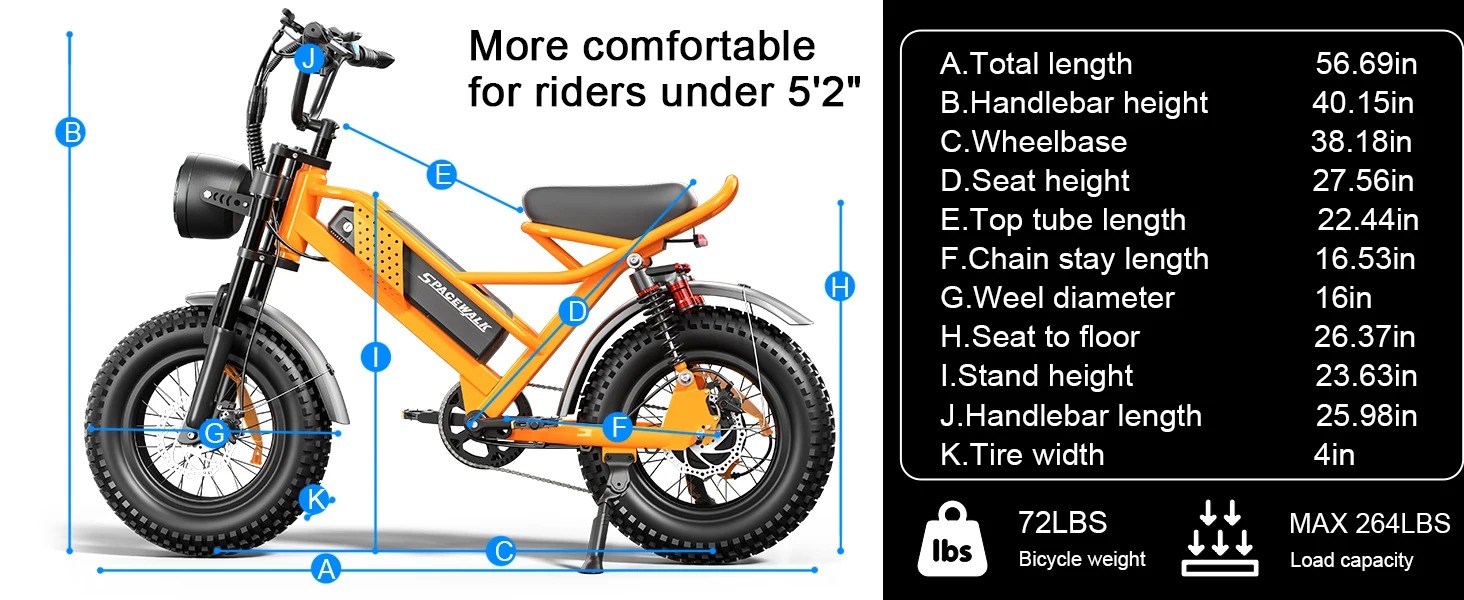 - Compact Design:Featuring a 16-inch tire frame,ideal for riders under 5’2″ and teenagers.Easier to handle and more efficient to ride,providing a better and more enjoyable riding experience.