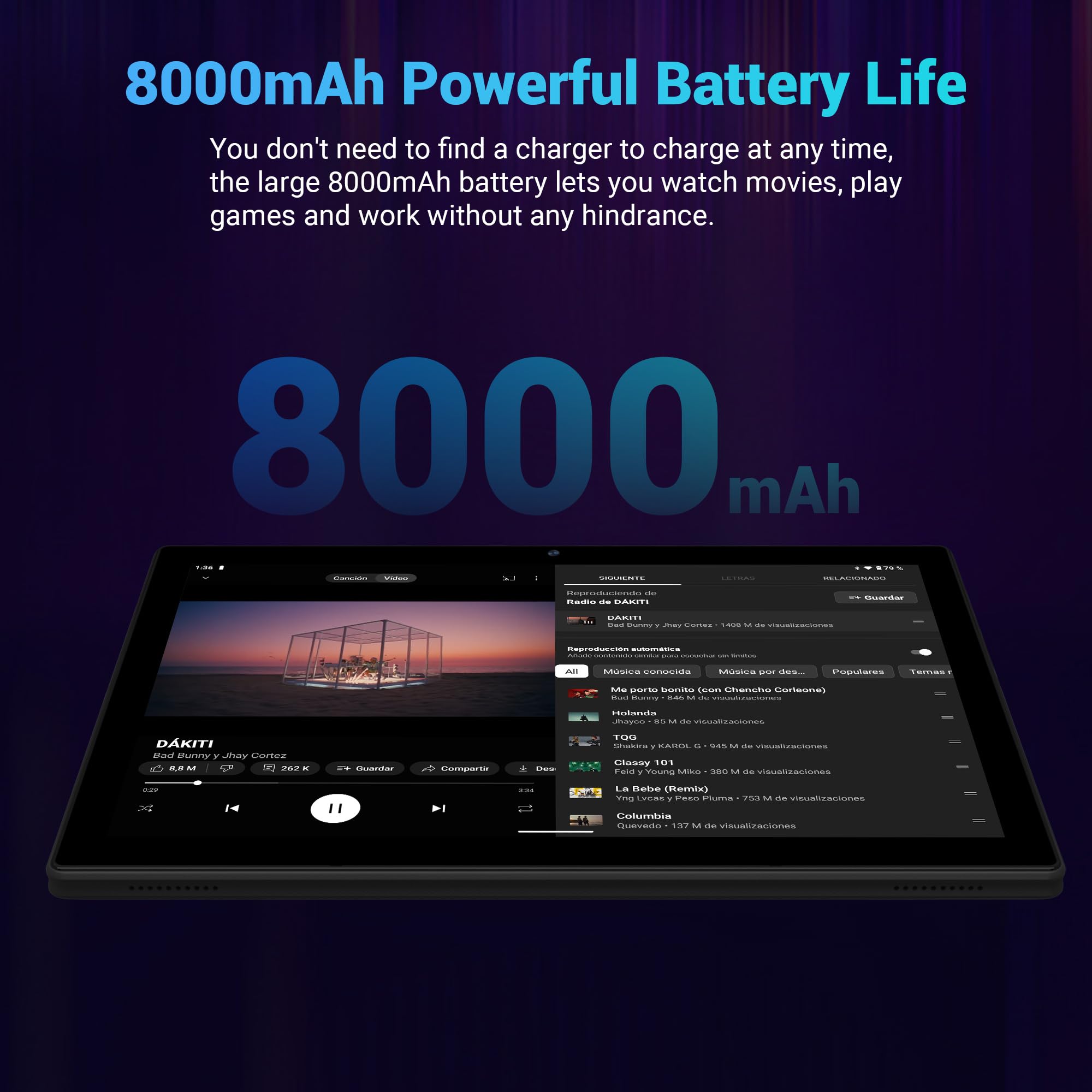 【8000mAh+ Widevine L1】The tablet is equipped with an 8000mAh ultra-large-capacity battery that can last up to 15 days in standby modThe tablet is equipped with an 8000mAh ultra-large-capacity battery that can last up to 15 days in standby mode. Widevine L1 supports advanced features such as HDR (High Dynamic Range) videos, providing users with a better visual experience.