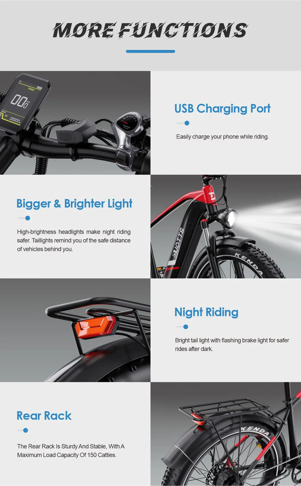 * 【BUILT TO LAST, NO COMPLICATIONS!】: DUOTTS F26 Ebike with a lightweight frame made of high quality aluminum alloy, ensuring strength and durability. High strength front suspension provides a smooth and comfortable ride, with a total load capacity of 150kg. E-bikes arrive 85% pre-assembled, complete with manual and tools for easy setup.