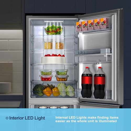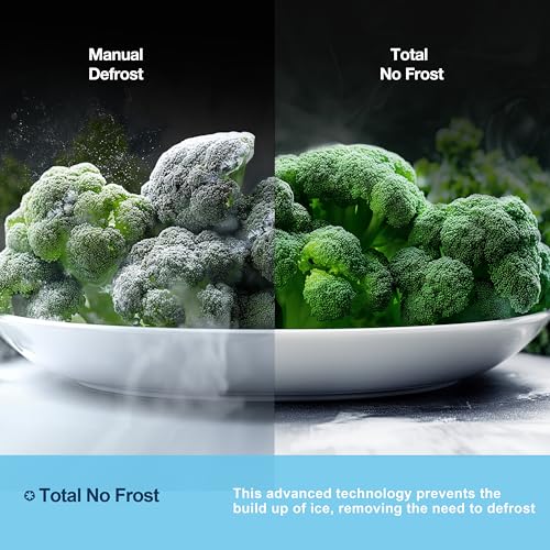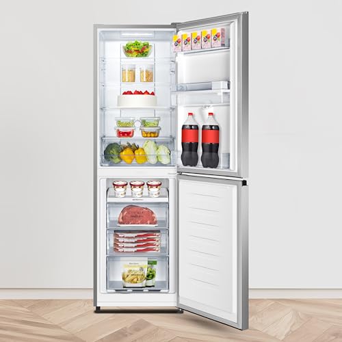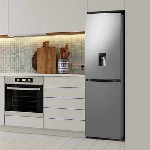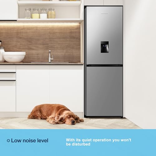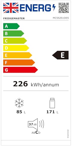 Fridgemaster MC55251DES 55cm Freestanding 256 litre 50/50 Frost Free Fridge Freezer with Non-plumbed Water Dispenser – LED Lighting- 4 Star Freezer Rating -Silver – E Rated, H182.4 x W55 x D55.7 (cm)