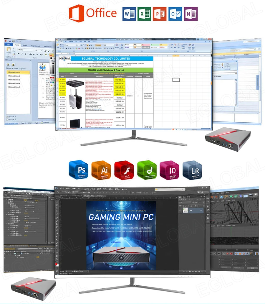 1xMini PC, 1xPower Adapter, 1xPower Cord, 1xScrews Bag, 1xSATA power&data cables
