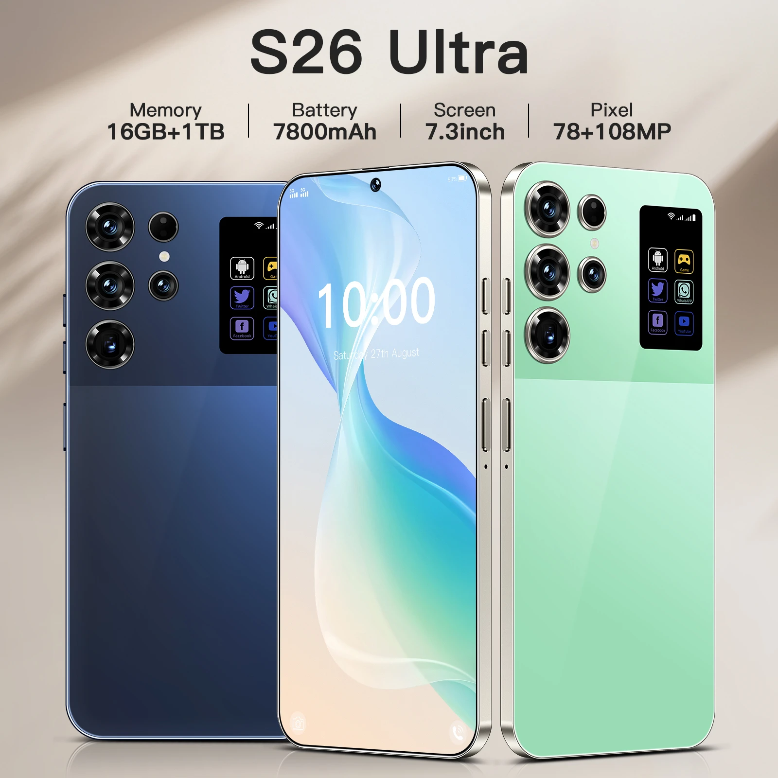 High End Galax S26 Ultra 16GB Smart Android Phone 7800mah 5G Dual SIM Dual Standby Unlocked Smartphone