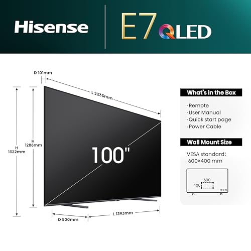 Be the first to review “Hisense 100 Inch 4K QLED Smart TV 100E7NQTUK – Quantum Dot Colour, 4K AI Processor, Dolby Vision Atmos, Smooth Motion, Sports Mode, Vidaa OS with Freely, Youtube, Netflix and Disney+ (2024 Model)” Cancel reply