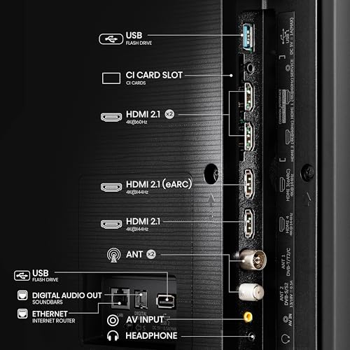 Connectivity: Dual Band Wifi (2.4G and 5G) | Bluetooth 5.0 | Airplay 2 | Share to TV | USB 2.0×1 USB 3.0 x 1 Ports to connect hard drives and other USB devices | 2 x Full HDMI 2.1 + 2 x HDMI 2.1 compliant (eARC, ALLM, VRR) to connect latest gaming consoles, set-top box, Blu-ray Players