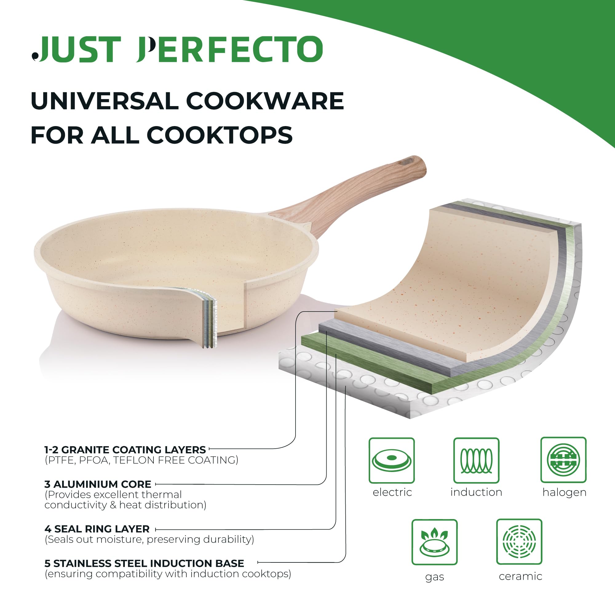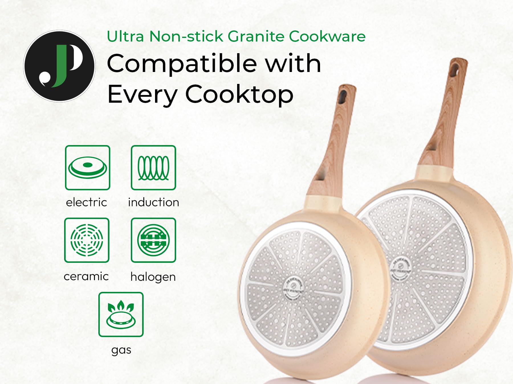 Details: Versatile cookware set with high quality pans and pots that are perfect for all hob types, including induction. Our pan and pot set offers frying pans in different sizes, including the popular 24 cm frying pan and the durable ceramic pan. The induction cooking pots are also part of this comprehensive set. The 24 cm frying pan is equipped with a high-quality non-stick coating, which allows cooking pleasure without sticking or sticky residue. Our non-stick pan technology allows you to prepare delicious dishes without excessive oil use. The pan is also easy to clean and environmentally friendly. Our pan sets are not only suitable for induction cookers, but also for gas and electric hobs. With a induction pan set, you can prepare versatile dishes without worrying about compatibility. The non-stick pan set provides an exceptional non-stick effect and makes cleaning easier after cooking. The induction cooking pot in our pot set suitable for induction cookers are robust and durable. The non-stick pan surface with granite technology and 5x ultra non-stick performance offers excellent heat conductivity and cooking results of the highest quality. Our pan set offers not only versatility, but also comfort. The pans and pots are equipped with ergonomic handles that stay comfortably cool and provide a secure grip. The pans with lids are ideal for preparing different dishes. Enjoy cooking with our high-quality pans and pots. The induction pan set and pot set not only offers outstanding cooking results, but also ease of cleaning. Experience the joy of cooking without annoying scrubbing. Our pan set and pot set are the perfect choice for any cooking lover of quality, versatility and environmentally friendly properties