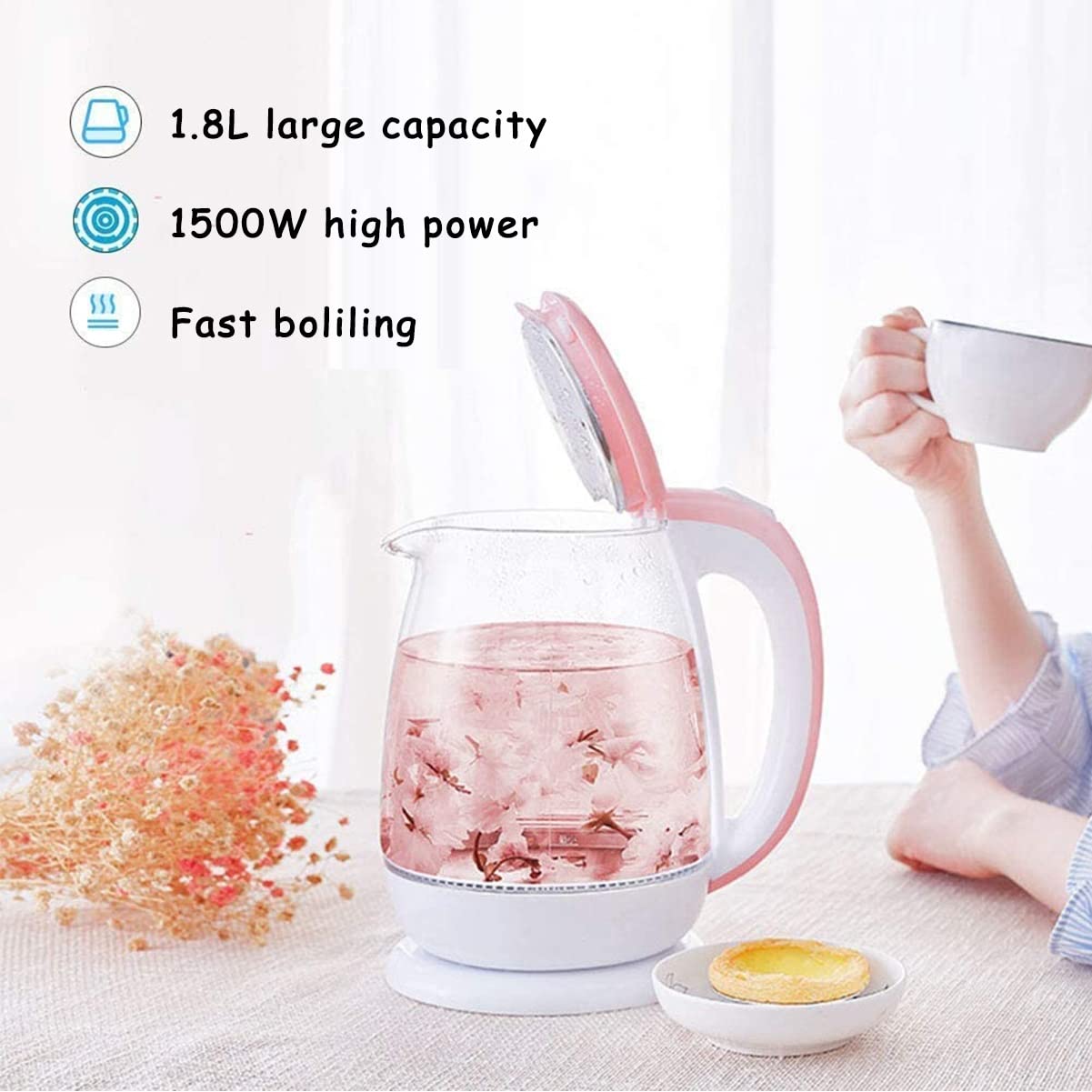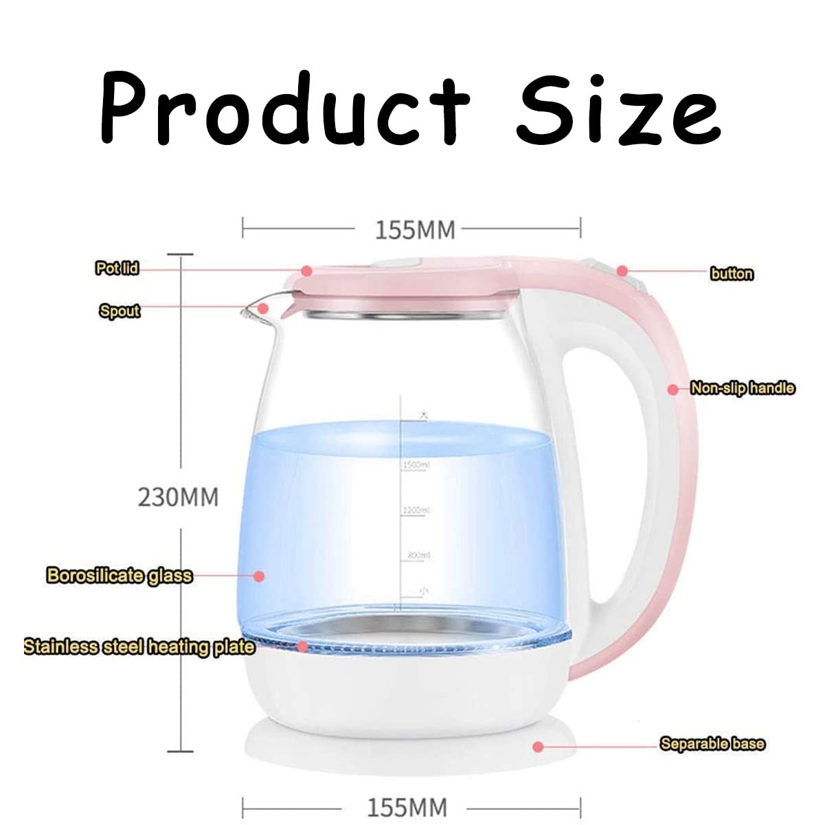 Details: This Electric Kettle Has a 1.8L Capacity Which Satisfies Your Need for Hot Water. Together with The-Grade Stainless Steel Material, This Water Warmer Keeps Your Water Out of Contamination from Plastic Materials.