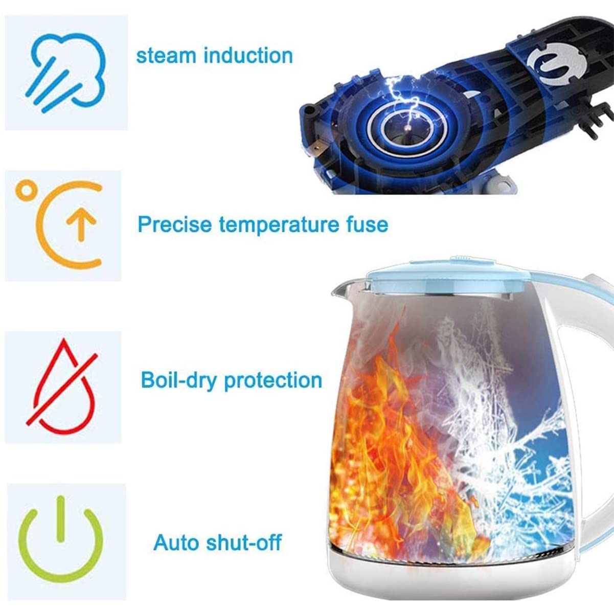 Putting Your Safety in the First Place, Stainless Steel Electric Kettle is Equipped with Auto Shut off and Boil-Dry Protection Safety Engineetechnology. for Any Problems, You Could Contact Our Customer Service Team and We Will Reply to You Immediately to Solve Any of Your Worries.