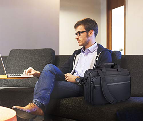 KROSER Laptop Bag Premium Laptop Briefcase Fits Up to 17.3 Inch Laptop Expandable Water-Repellent Shoulder Messenger Bag Computer Bag for Travel/Business/School/Men/Women-Black
