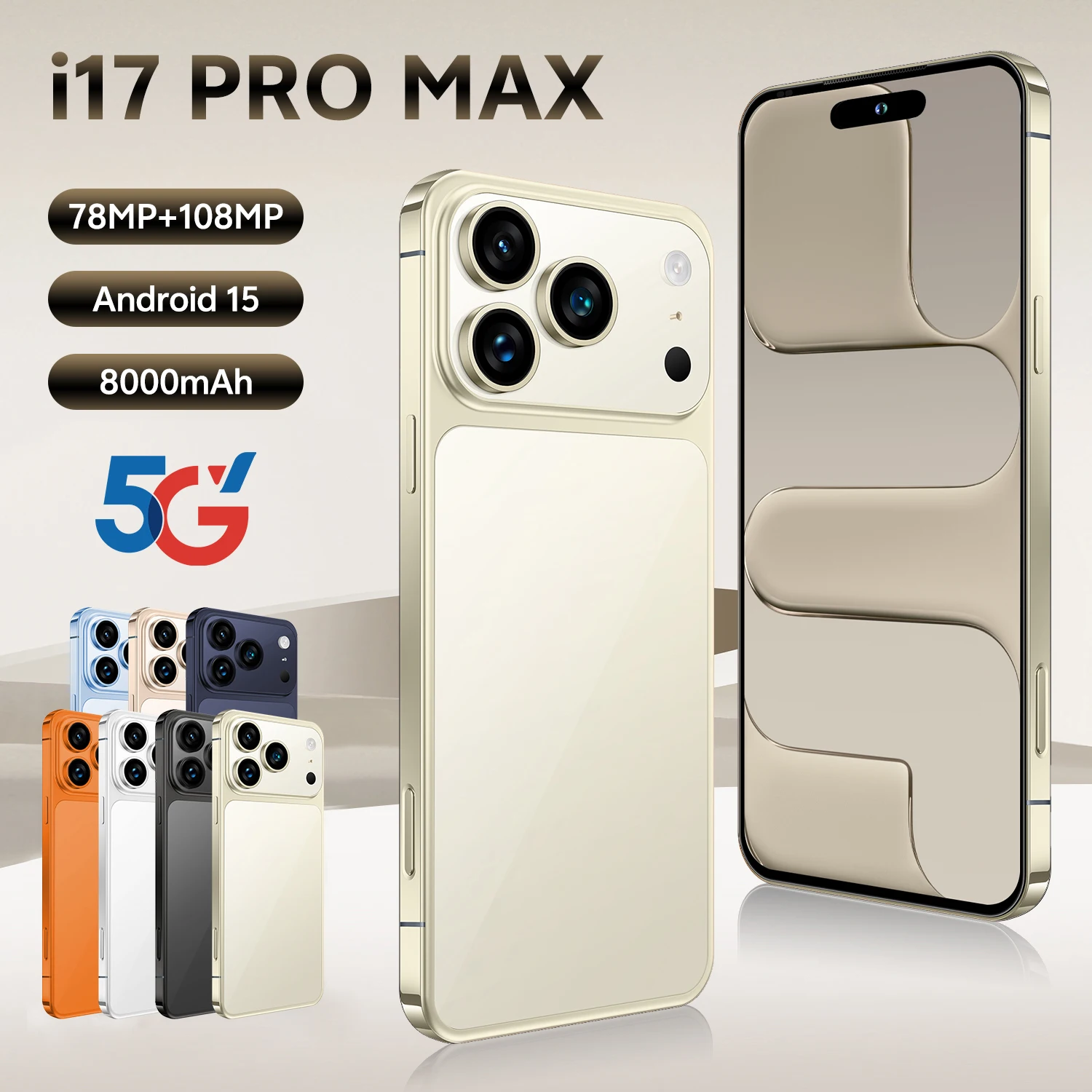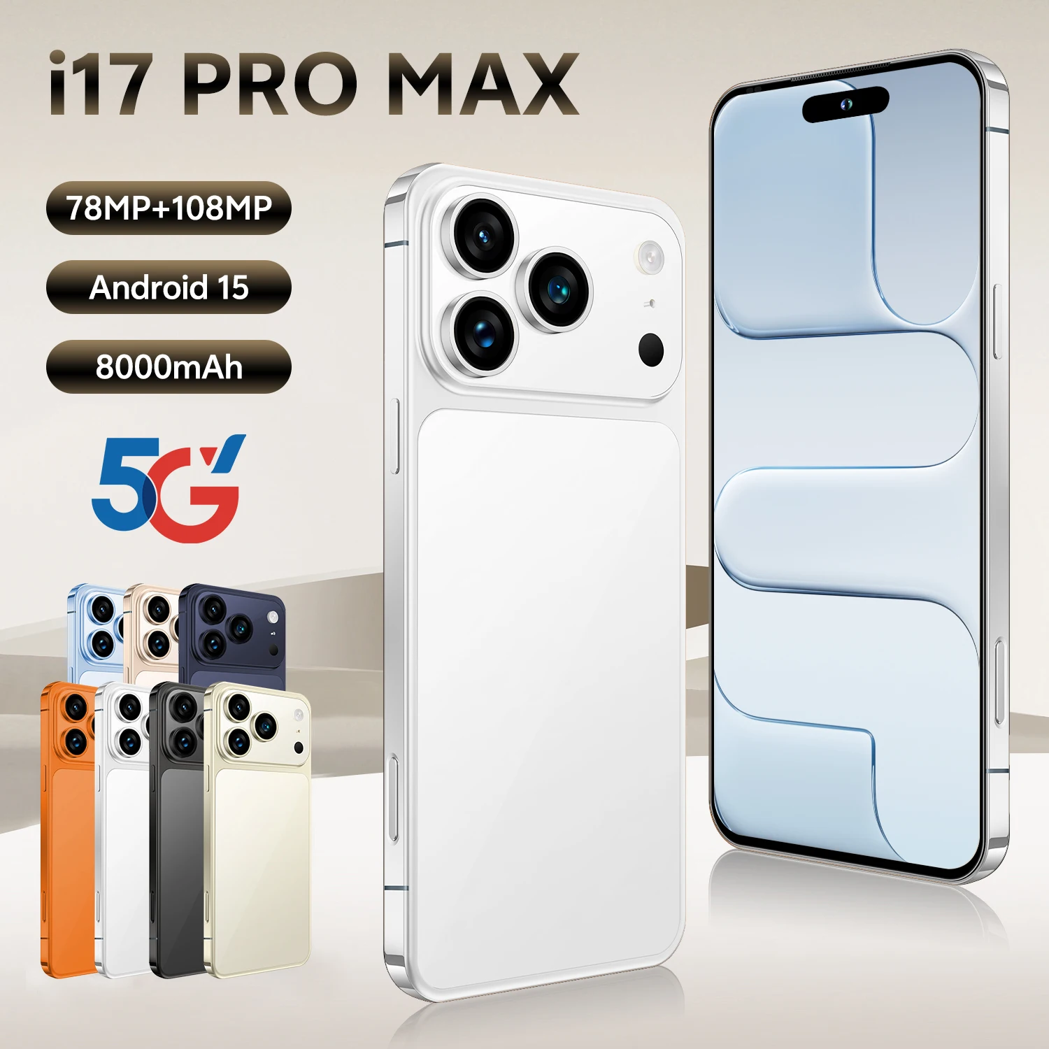 Latest I17Pro Max Smartphone 7.3 Inch HD Display Android French Dual Card 108MP 16GB 1TB Storage Battery
