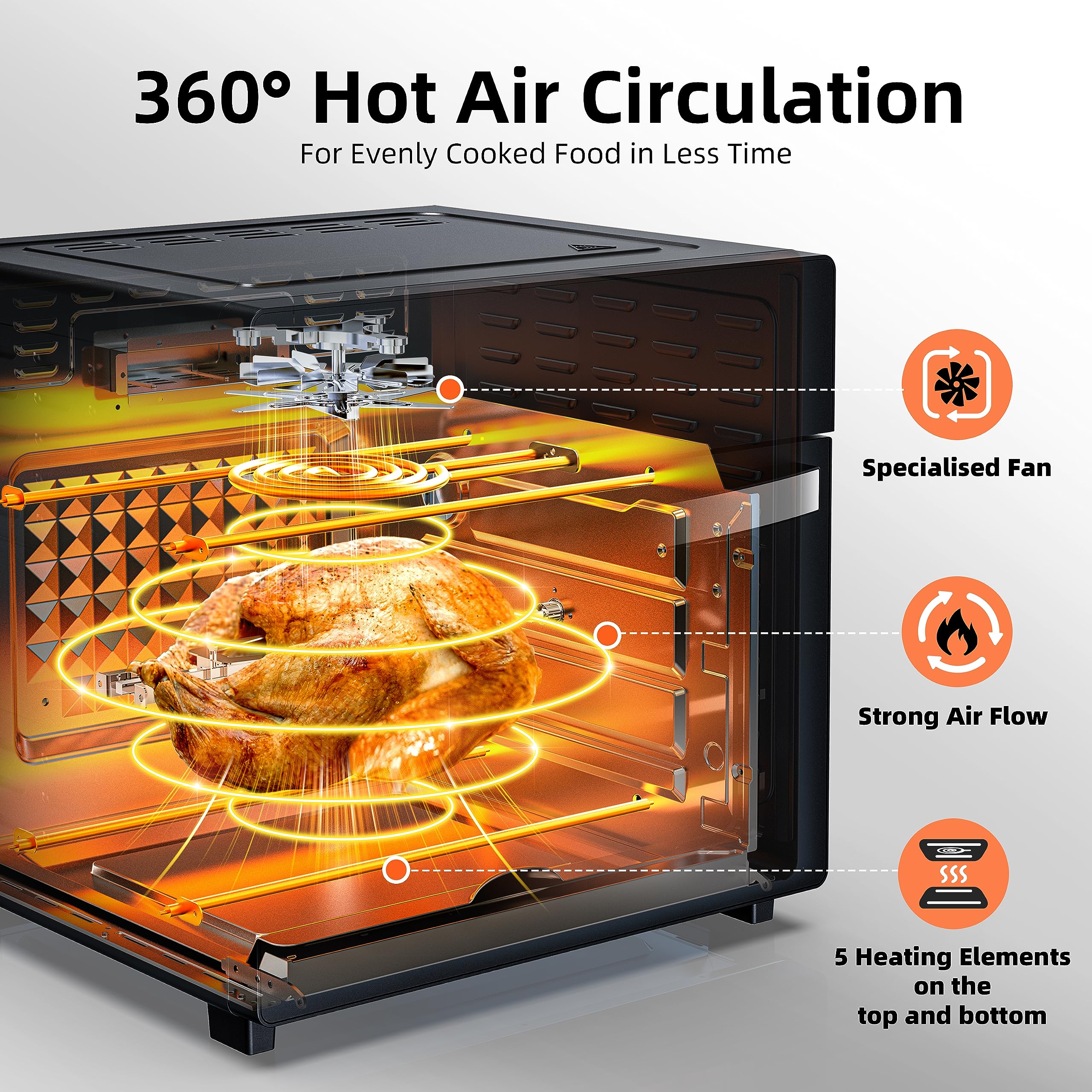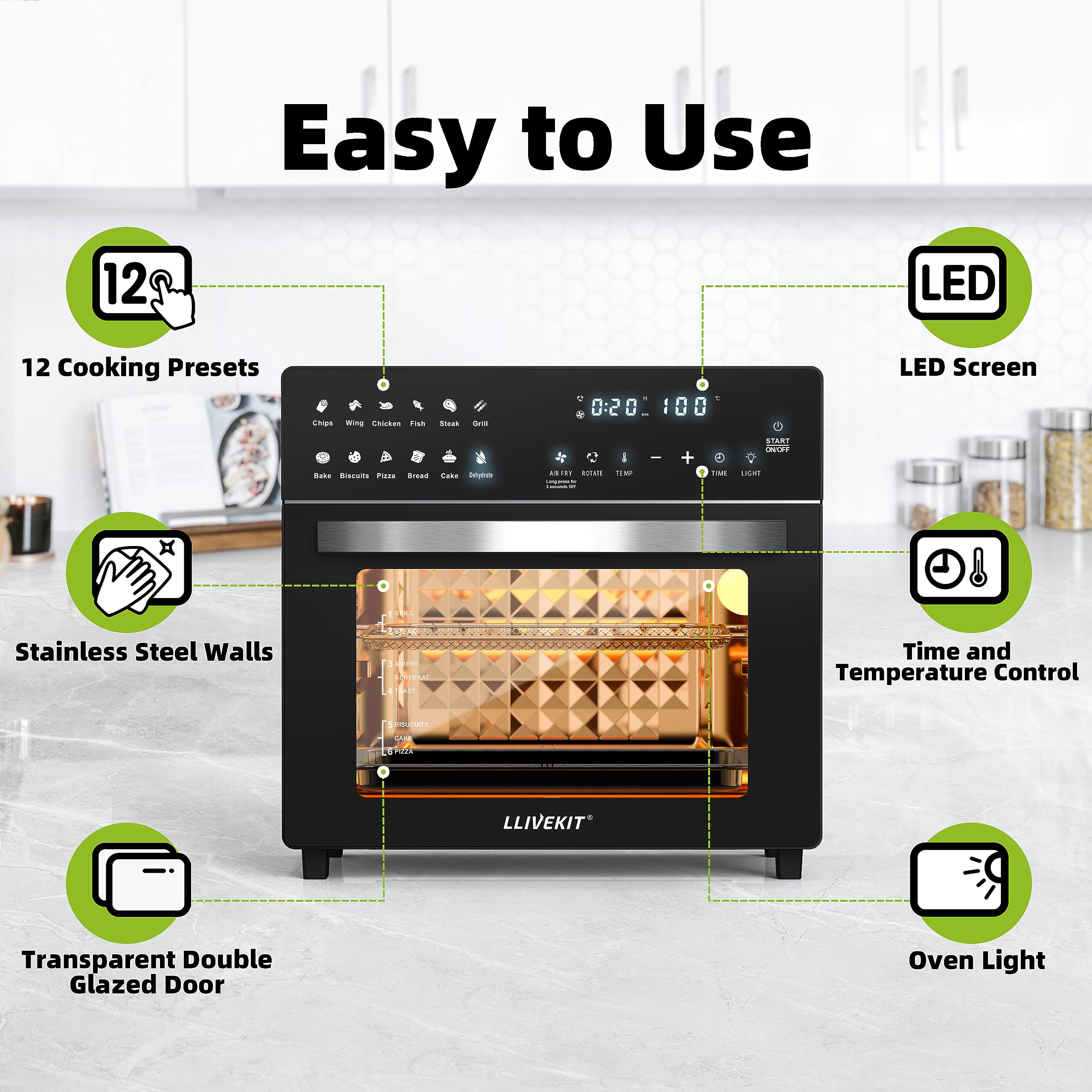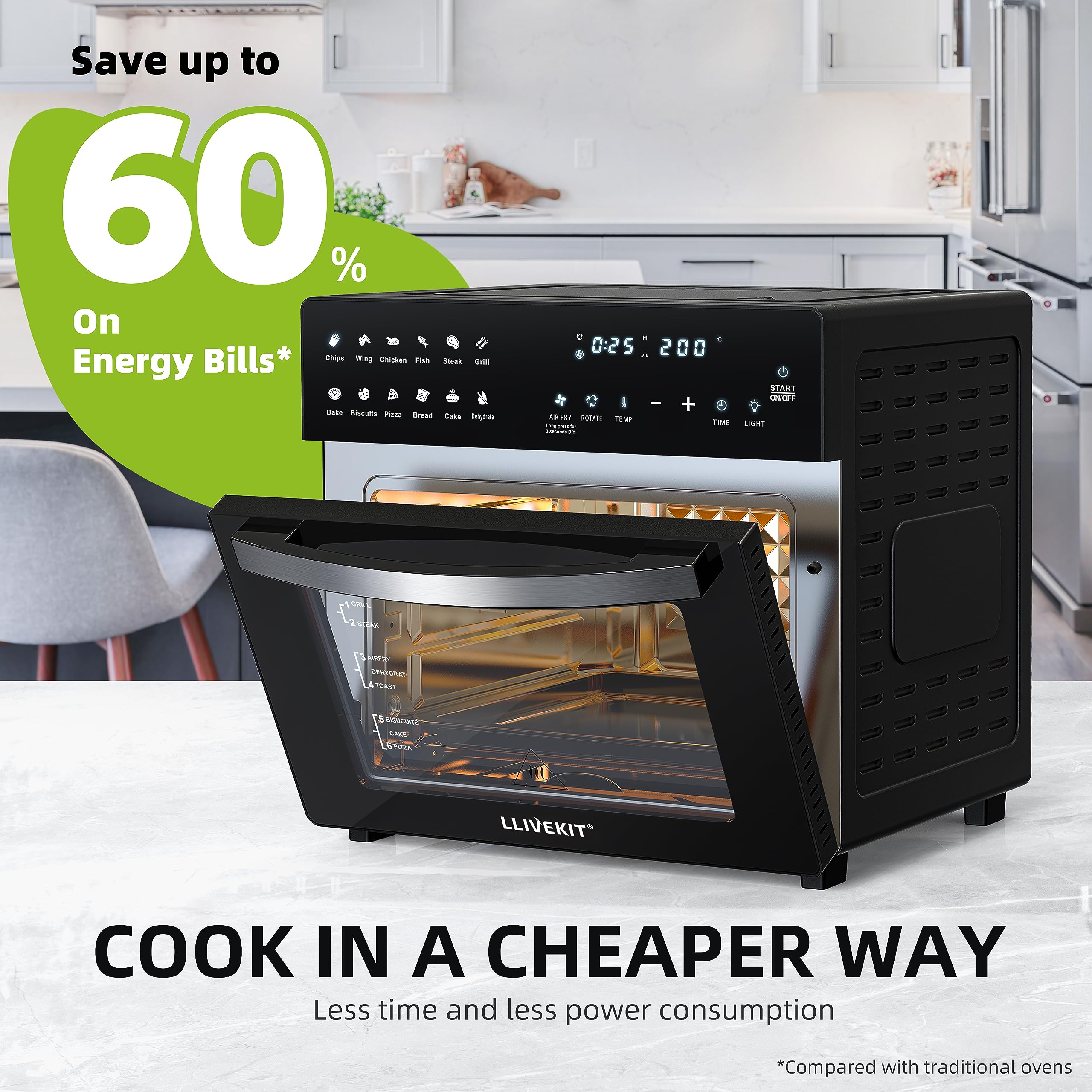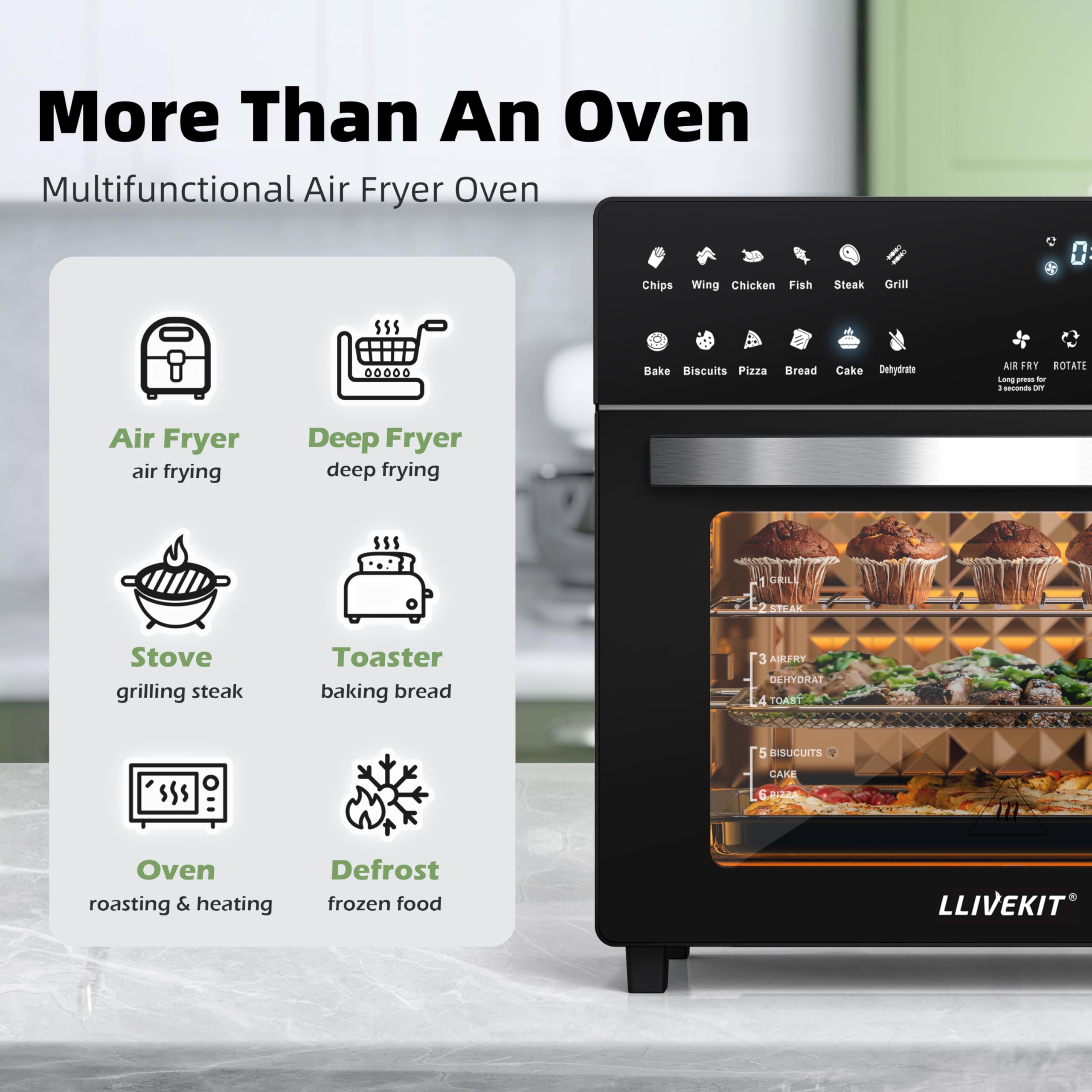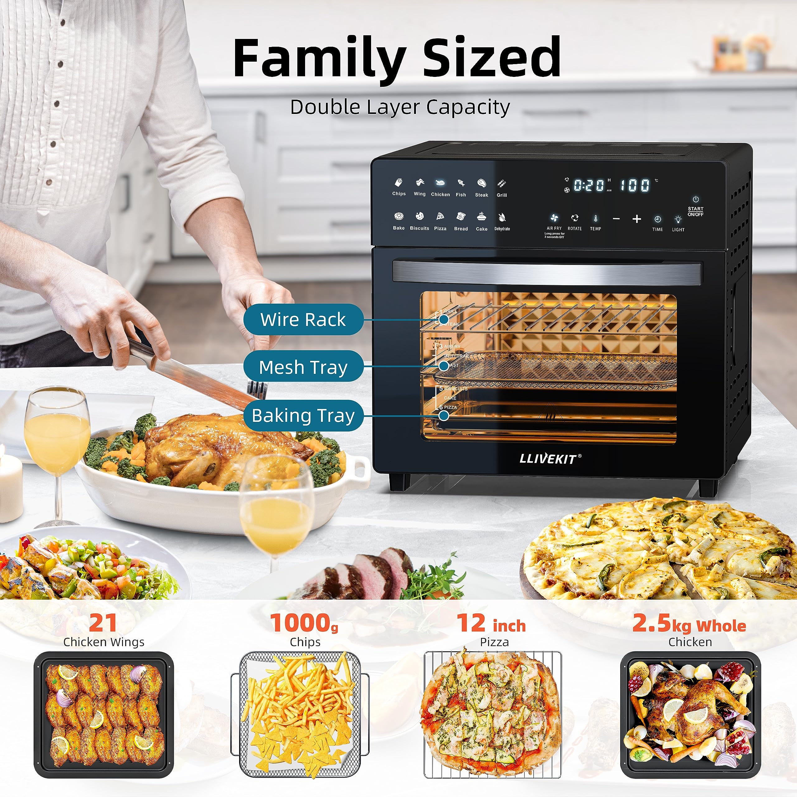 LLIVEKIT Air Fryer Mini Oven with Rotisserie 26L Large Family Size Countertop Convection Oven Low Fat Oil-Less Cooking, Timer & Temperature Control, 12 Preset Programs, 1700 Watts