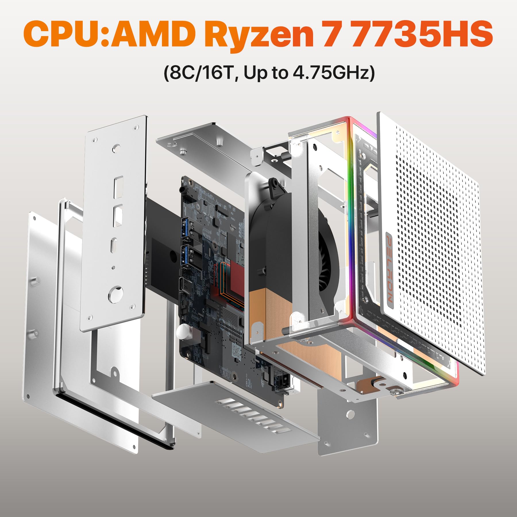 32GB RAM & PCIE 4.0 1TB SSD:The PELADN HA-4 AMD 7735HS mini PC comes equipped with 32GB of lightning-fast DDR5 RAM running at 4800MHz (upgradeable to 64GB, 2 x 32GB), which is 35% faster than DDR4. Additionally, it features a lightning-quick 1TB M.2 2280 NVMe SSD with PCIE Gen 4.0, providing a 50% boost in read speed compared to PCIE Gen 3.0. If you need more storage space, you can easily expand it with a 2.5-inch 7mm SATA HDD (not included), allowing your mini desktop computer to run more applications smoothly and achieve faster startups.