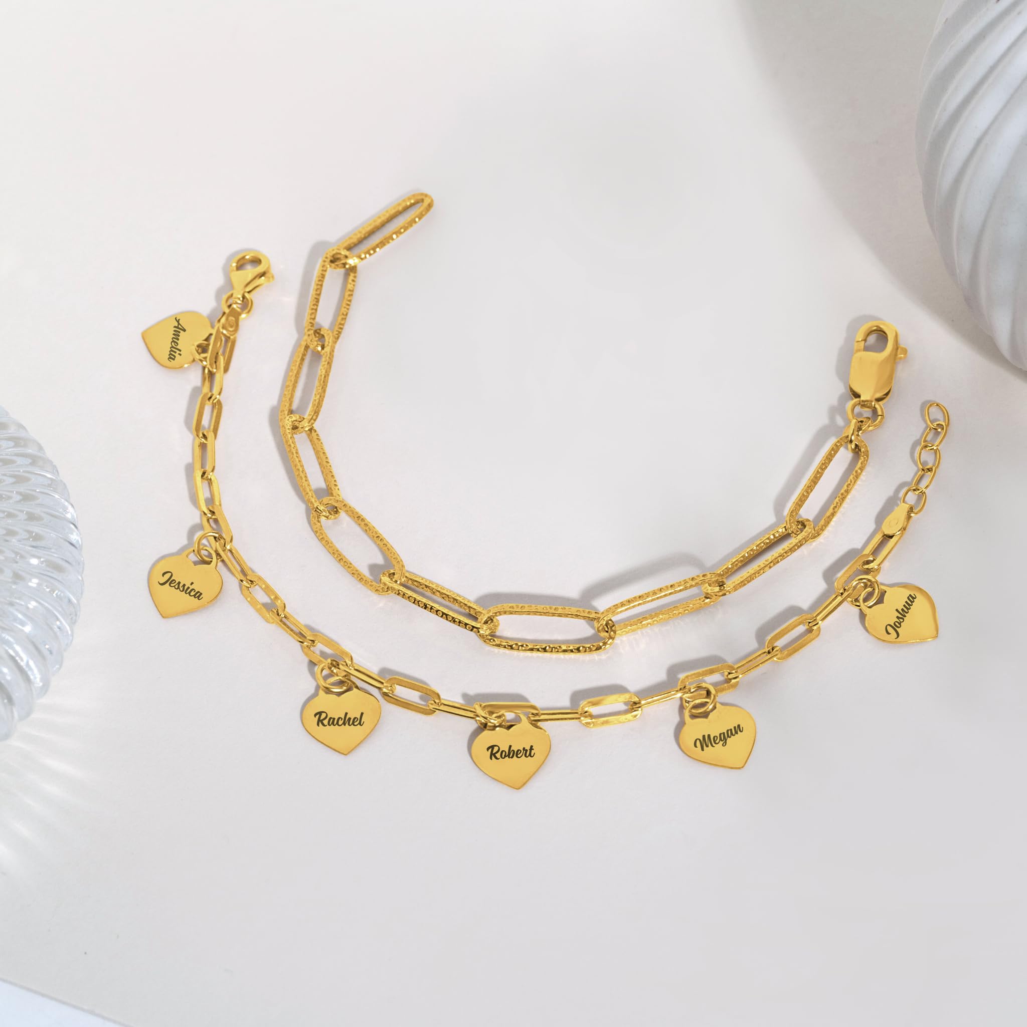 PERSONALISED HEARTS: Cherish the meaningful connections in your life with this elegant paper clip bracelet, which allows the addition of up to six heart pendants, each meticulously engraved with names, initials, or significant dates, transforming it into a treasured keepsake of shared moments and cherished individuals.
