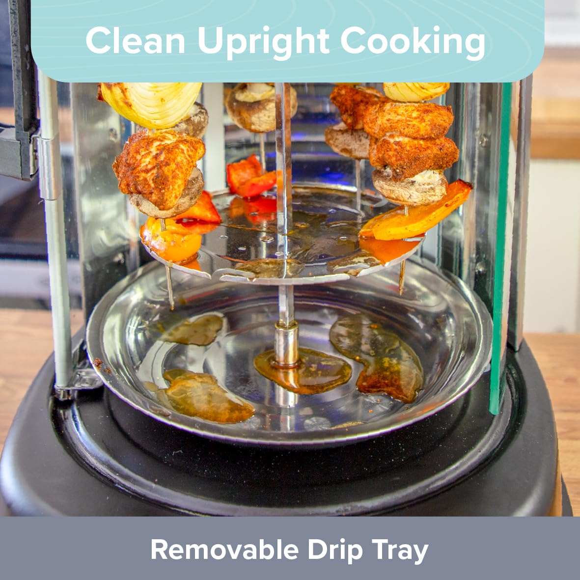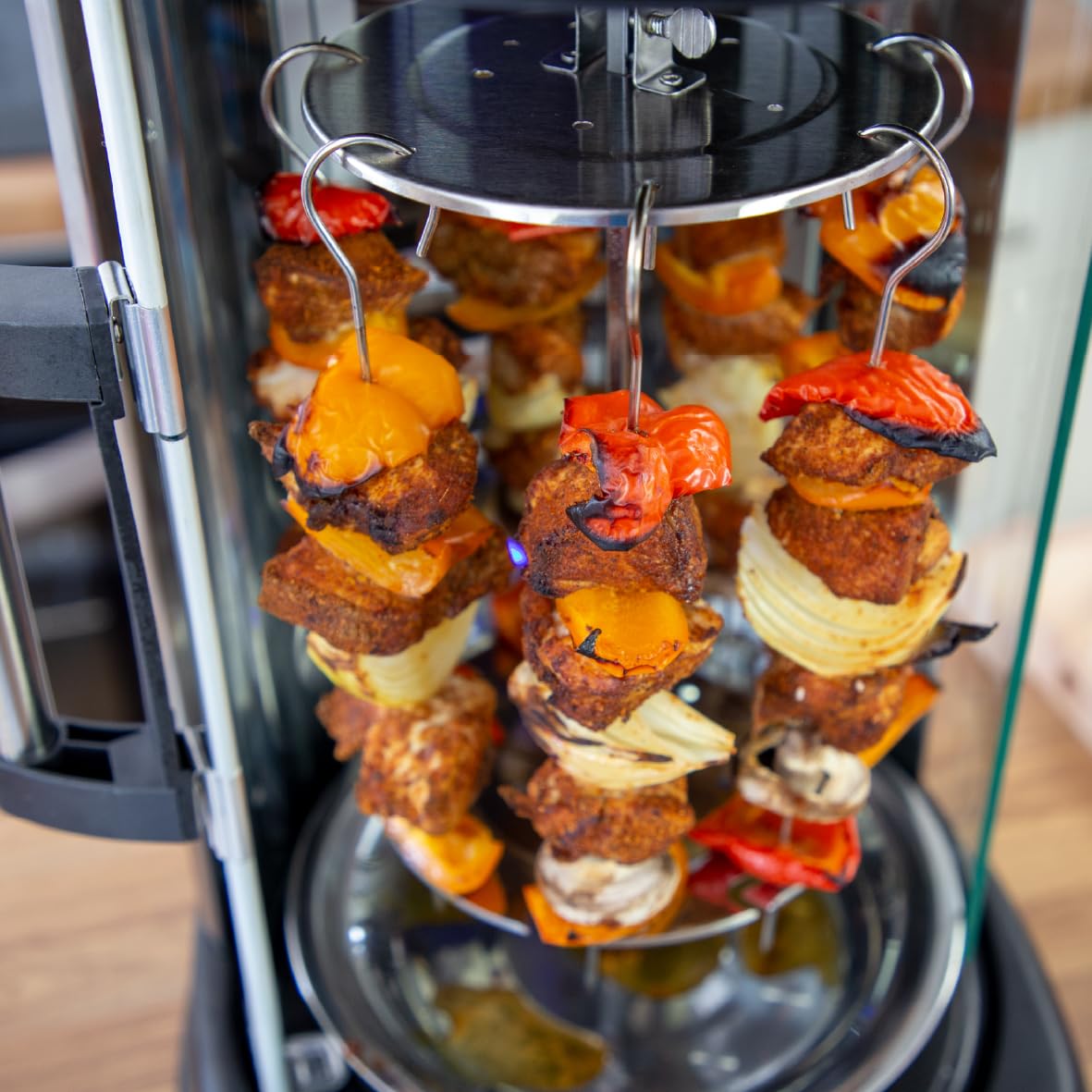 ELECTRIC ROTISSERIE GRILL – This freestanding vertical grill is ideal for providing you with delicious meals without the need to leave your home. It functions as a kebab machine for doner meat, a grill for skewers, or a rotisserie for larger meats such as a whole chicken.