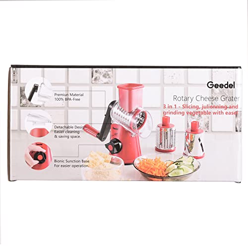 Rotary Cheese Grater, Vegetable Slicer with Three Drum Blades, Grater for Kitchen Faster and Easy Cutting, Rotary Drum Grater Ideal for Cheese, Cucumber, Carrot. etc.