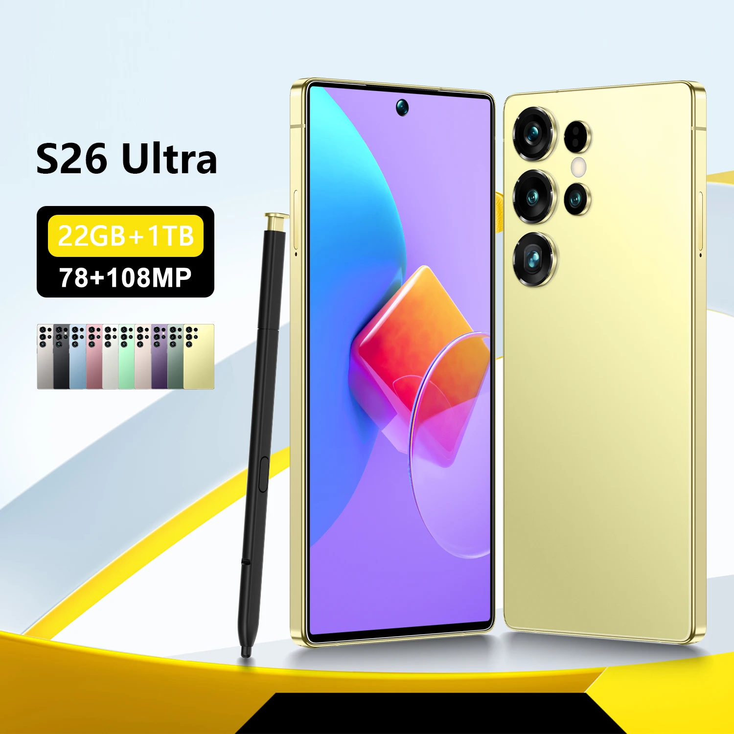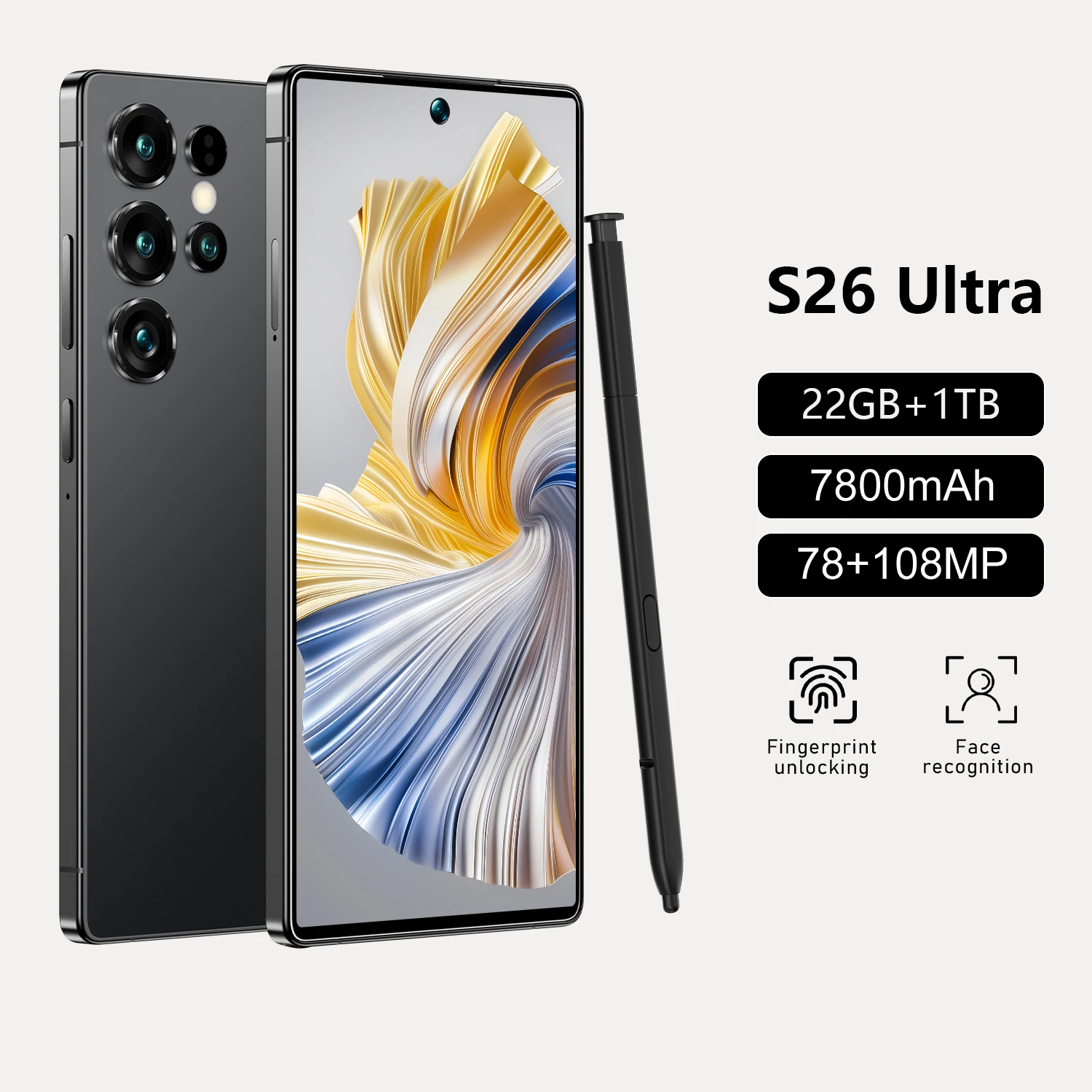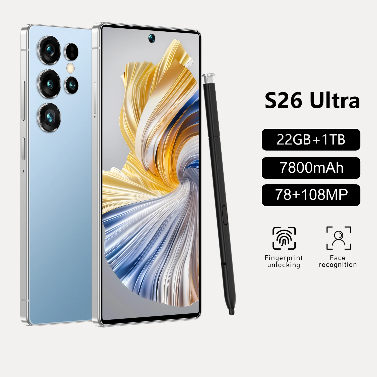 S26 ultra Unlocked 78+108MP Dual Sim Dual Standby 22G+1TG Cheap Smart Phone 7.3 Inch Android 14.0 Mobile SmartPhones