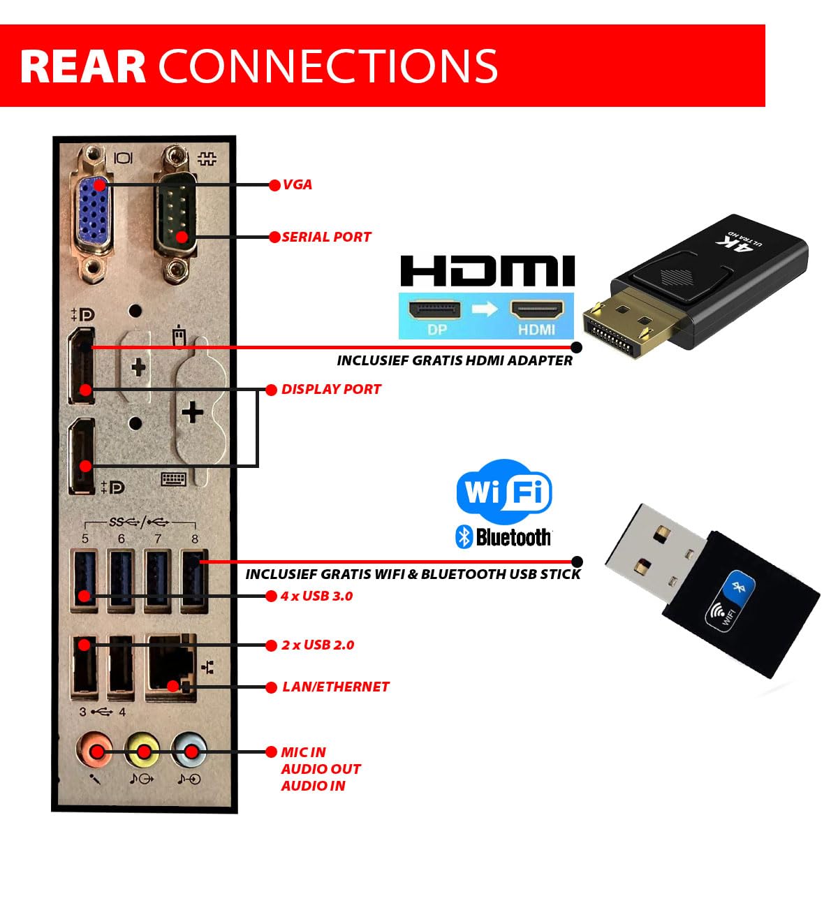 Specifications: Motherboard: Intel mainboard Processor: Intel Core i7-4470 Graphics card: Intel HD Graphics 4600 RAM: 32GB SSD: 2000GB Casing: OFF263 Cooler: BOX Power supply: 250 watts – (80Plus) Extra: Windows 11 Pro | DVD-RW | HDMI (included adapter)