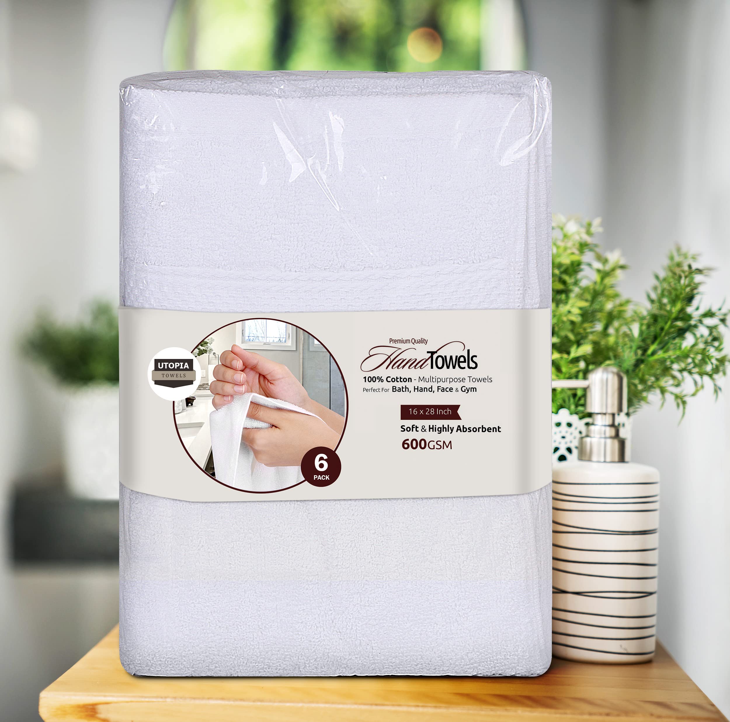 Utopia Towels – Premium Hand Towels – 100% Combed Ring Spun Cotton, Ultra Soft and Highly Absorbent, Extra Large Thick Hand towels 41 x 71 cm, Hotel & Spa Quality Hand Towels (6-Pack) (White)
